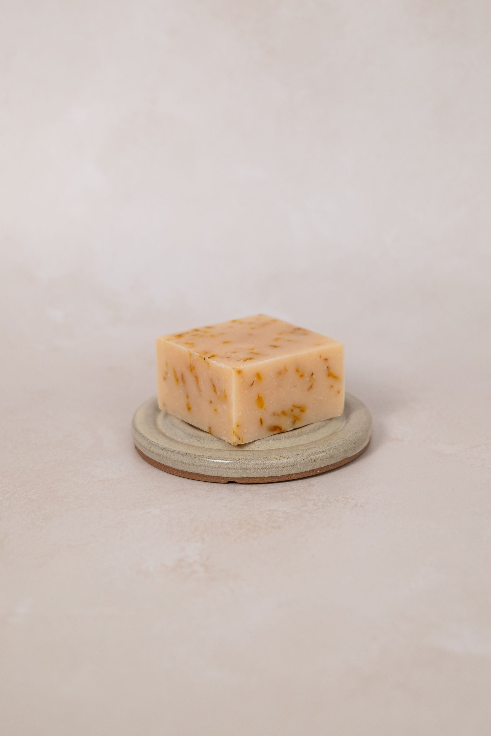 A perfect self-care gift, featuring our circular moss green stoneware soap dish paired with the Electric Eel soap bar, scented with a fresh, pepperminty fragrance.